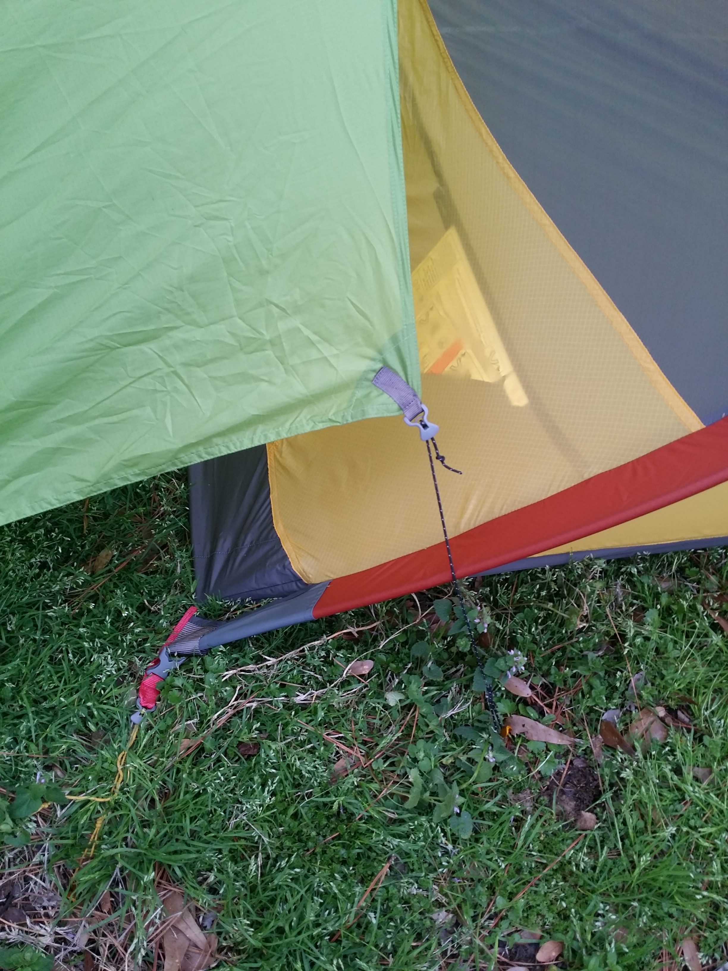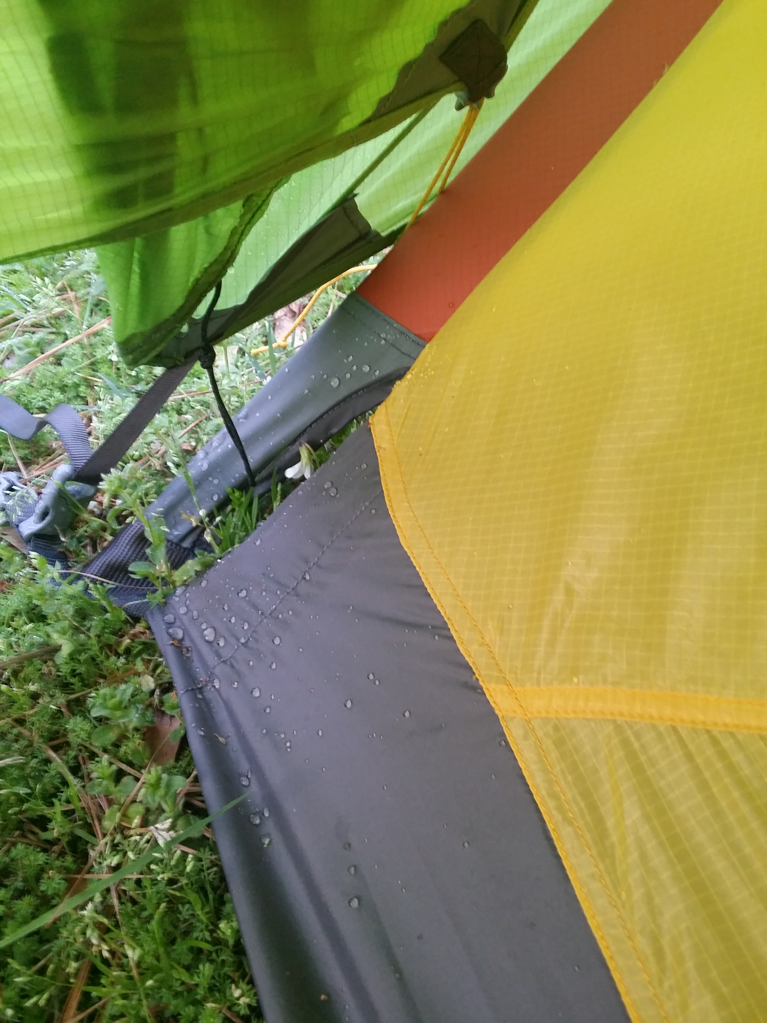 I didn’t not get any rain coming in through the top this time, but the lower corners of the tent did get wet.