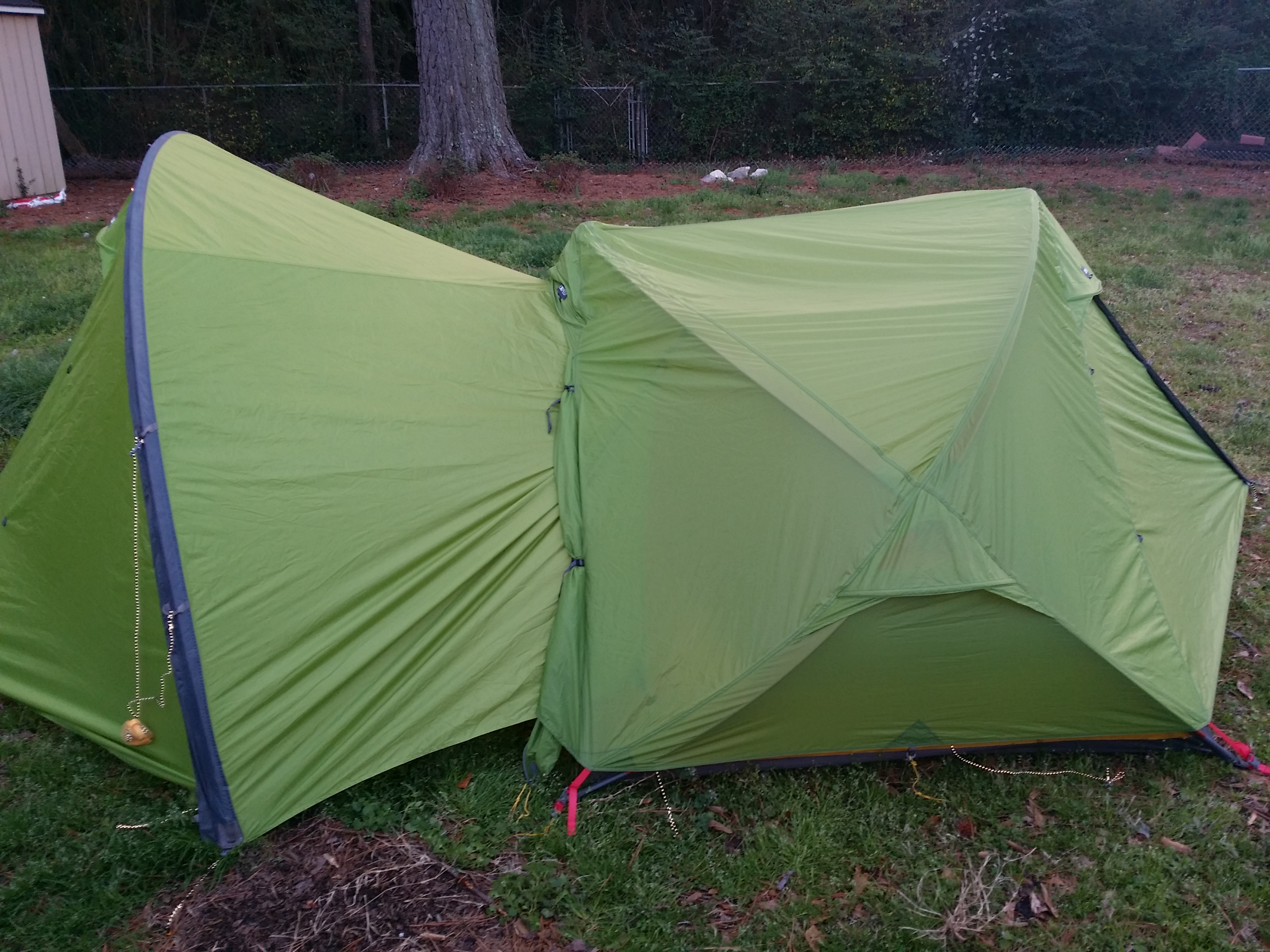 One other note, since the Outer Space has at least two clips that will be connecting with the poles where the fabric sleeves are, I believe this would likely result in holes in the sleeve fabric over time. It may not impact the structure or stability of the tent though. Already you can see where it is creating a “dent” in the fabric.