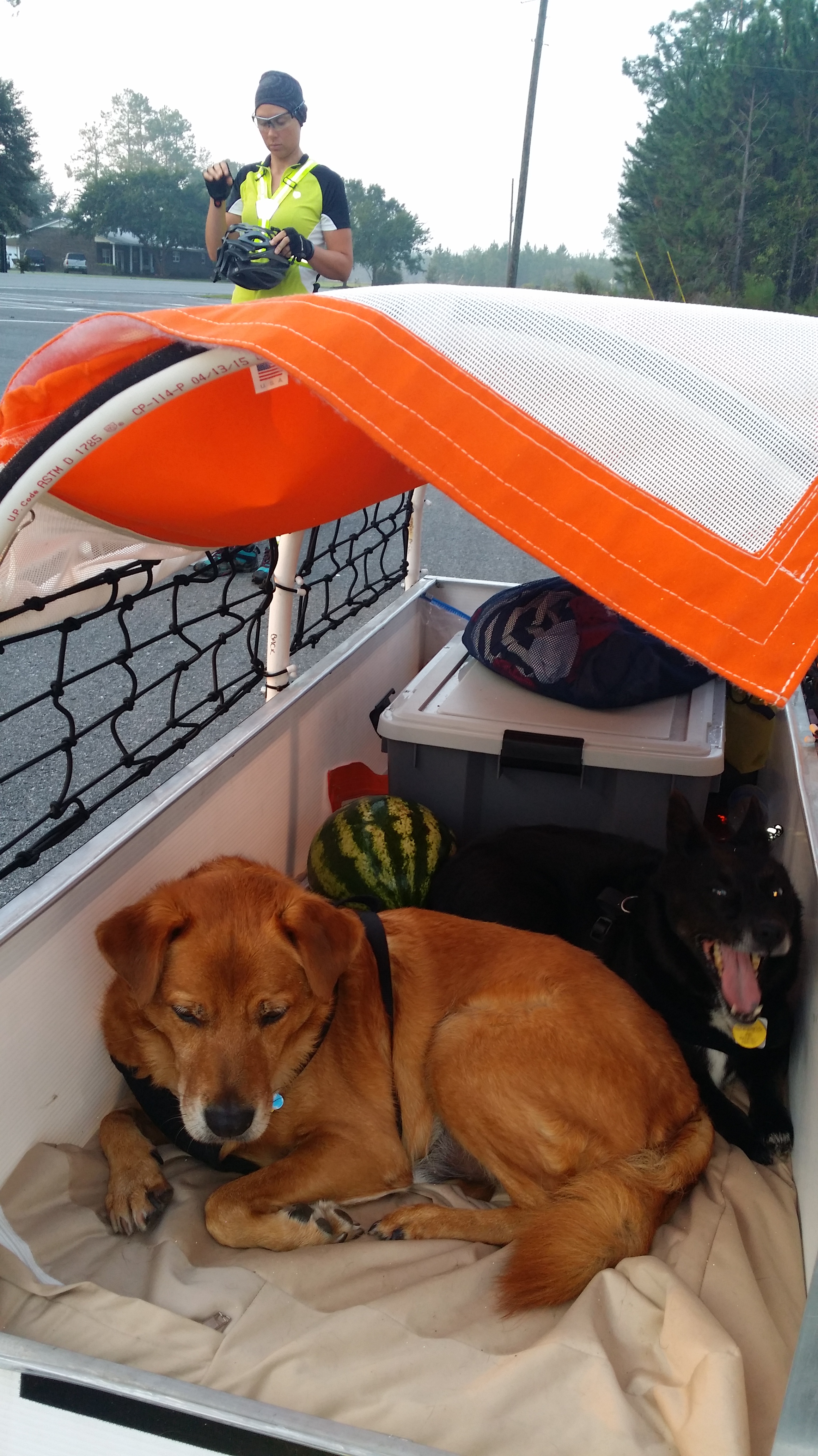 A few days back, we were leaving our campsite and an older man rode up next to us on a bike. He slowed to chat, “where are you going?” Georgia replied that we were heading south, and that we were on a year-long, 10,000 mile trip. Her words didn’t even register, so he asked again where we are going and the second time around, he heard the information. “OUT ON THE ROADS?! With traffic and trucks and crazy drivers?! With DOGS?! That’s not safe!” I replied that we were already about 900 miles in and had ridden all the way from the Outer Banks of NC. He said he only rode in the parks, and never out on the roads because it was too dangerous out there. We all chatted a bit more and he rode off saying, “wow, Wow, WOW!” in a progressively louder but more distant voice. That “wow” sounded to us like a mixture of disbelief, belief that we are crazy, and perhaps a bit of amazement that such things are possible. We still discuss that interaction, just like we sometimes revisit dozens of other interactions we have experienced. This trip, as with everything in life, has a risk and a reward. We can play it safe and never take a risk, but we will also miss out on living. We choose to live. We #justride.